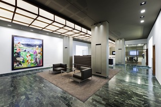In die Planung flossen feste Bestandselemente, sowie eine komplette Grundrissüberarbeitung mit ein. Die beiden Blickwinkel kollegiale Arbeitsatmosphäre sowie adäquates Repräsentieren einer Bank wurden in Einklang gebracht. Die Umsetzung unserer Konzeption für die einzelnen Arbeits-, -Sozial- Empfangs-und Meeting-Räume, beinhaltete auch eine angemessene Erneuerung des Kunstbestands, sowie eine akustische Optimierung der Räumlichkeiten durch entsprechende Materialauswahl.